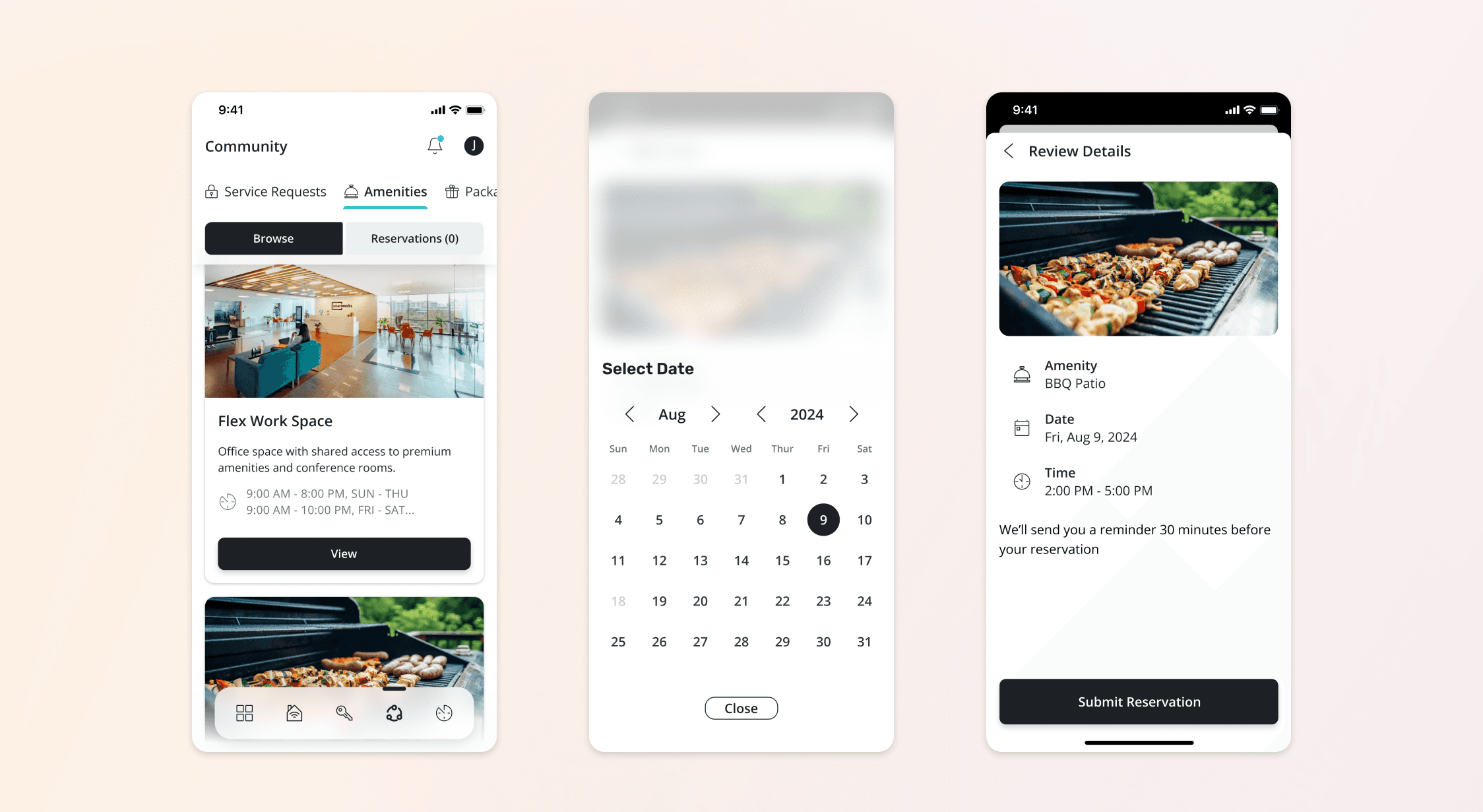 Residents can easily browse amenities, view details, book reservations, and receive reminders, all in one seamless interface